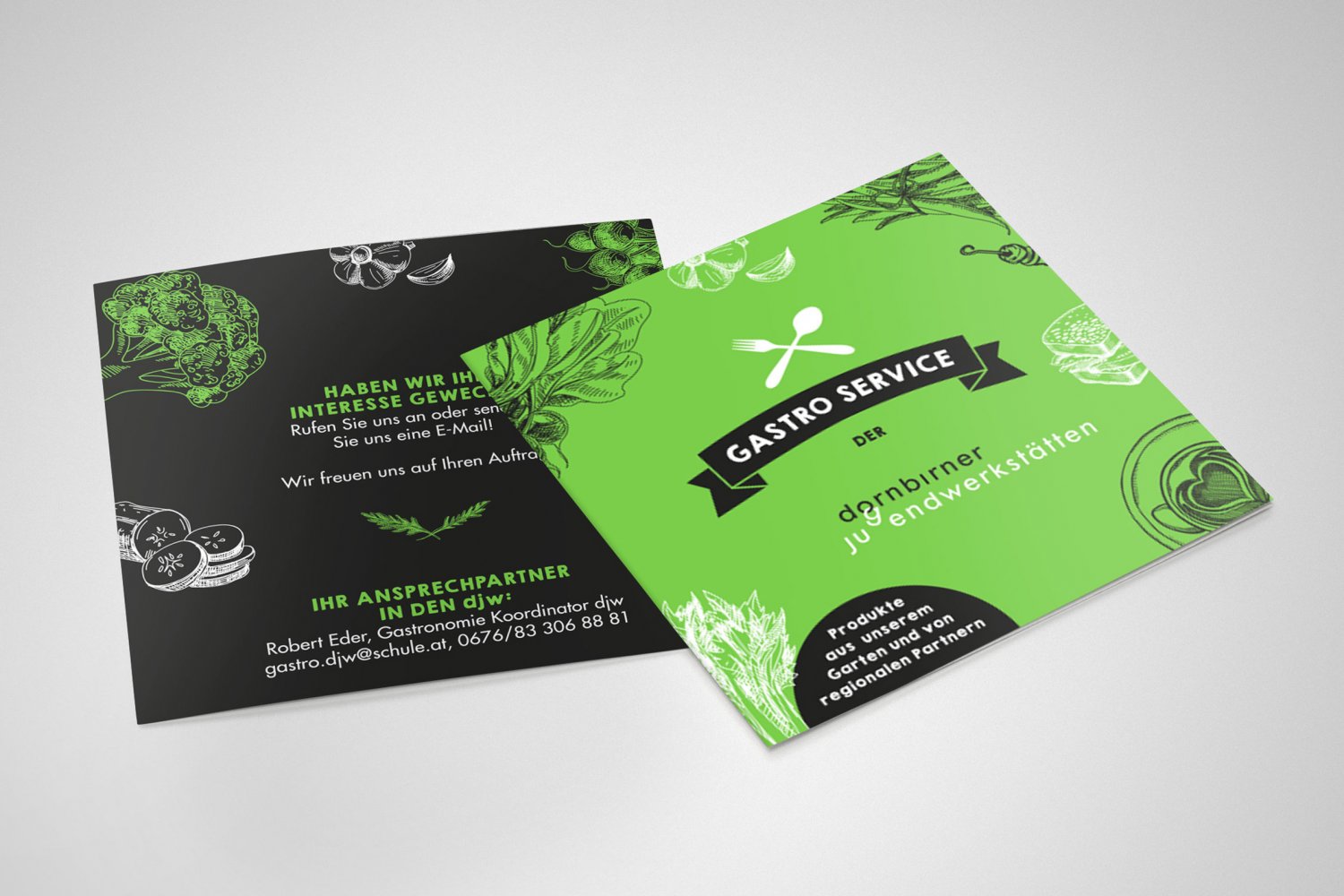 Die Dornbirner Jugendwerkstätten sind ein Arbeitstag- und Bildungsprojekt für langzeitarbeitslose Jugendliche. Für ihre neuen Bereiche „Gastroservice & Produktionsküche“ durften wir die Werbemittel und Etiketten für deren Produkte gestalten.
