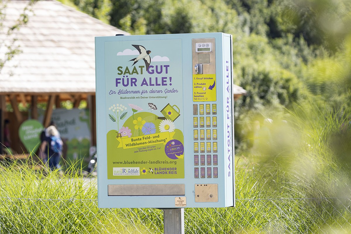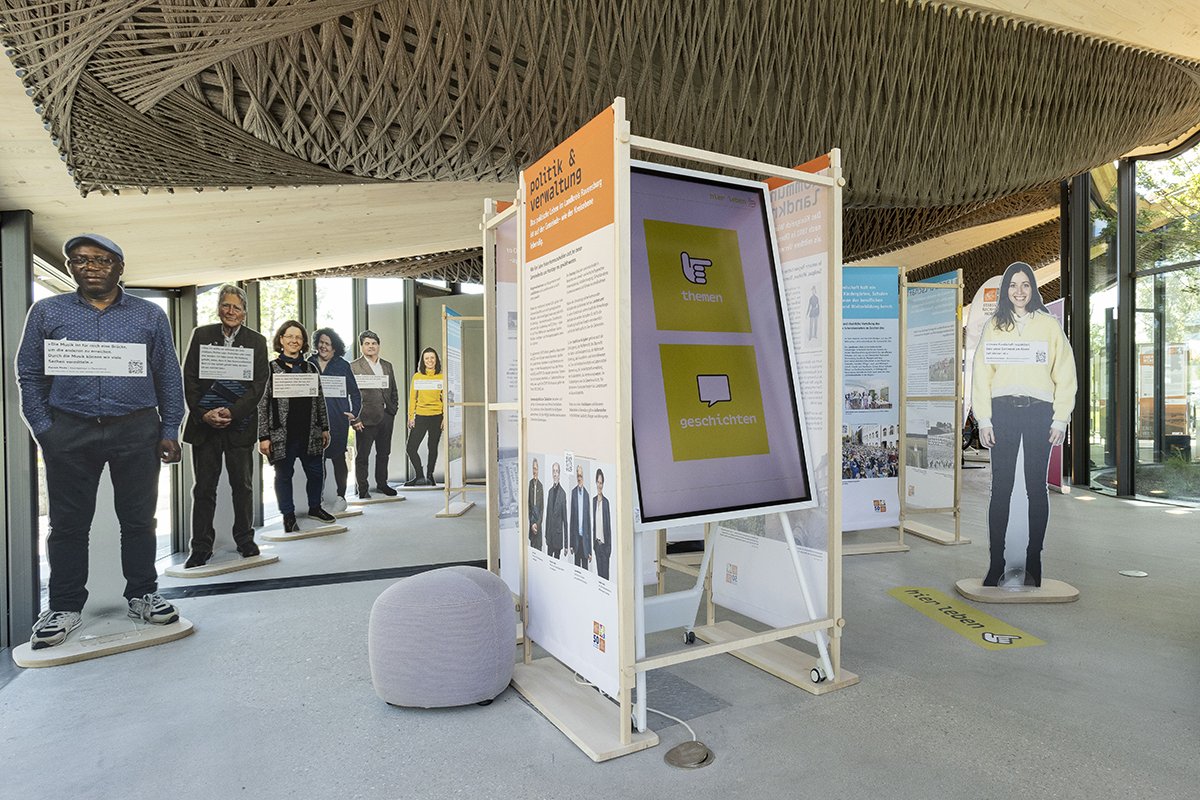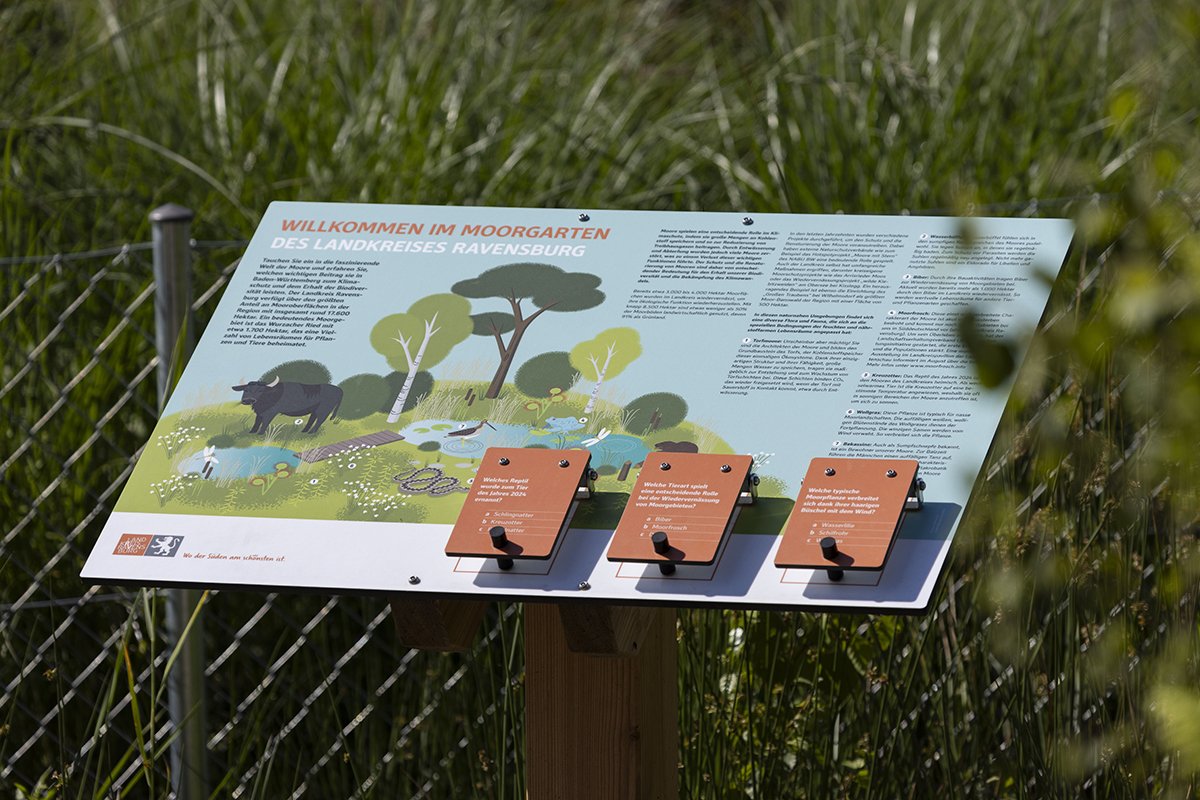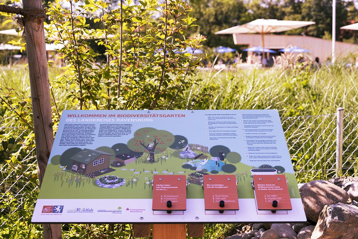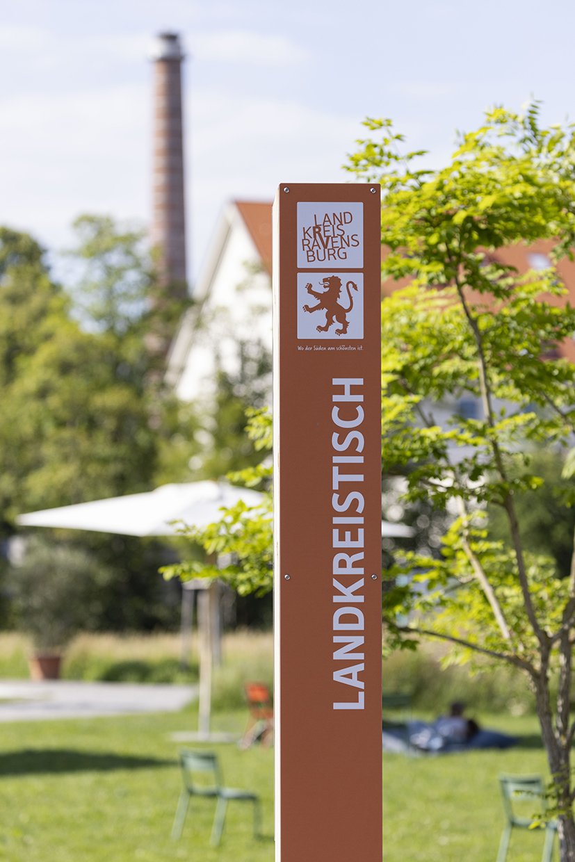 Der Landkreis Ravensburg präsentiert sich auf der Landesgartenschau Wangen 2024 im und am Flachsfaserpavillon auf der großen Argenwiese. Dafür haben wir das Leitsystem mit Stelen, Garten-Infotafeln mit Quizklappen, Pflanzschilder und einen Saatgutautomaten gestaltet. Für den Landkreistisch haben wir den Gemeinden aufgetragen, uns „Stühle mit Geschichten“ zu liefern. Über eine Hörstation oder einen QR-Code lassen sich die einzelnen - im Dialekt gesprochenen - Geschichten nun anhören.