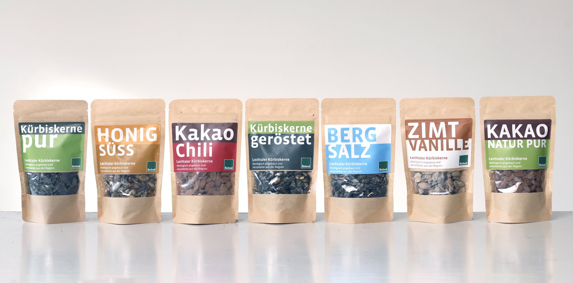 Die Familie Strobl bewirtschaftet seit 2001 ihren Hof nachhaltig und umweltschonend. Ihre Kürbiskerne stammen aus eigenem Anbau und werden mit verschiedenen Zutaten veredelt.