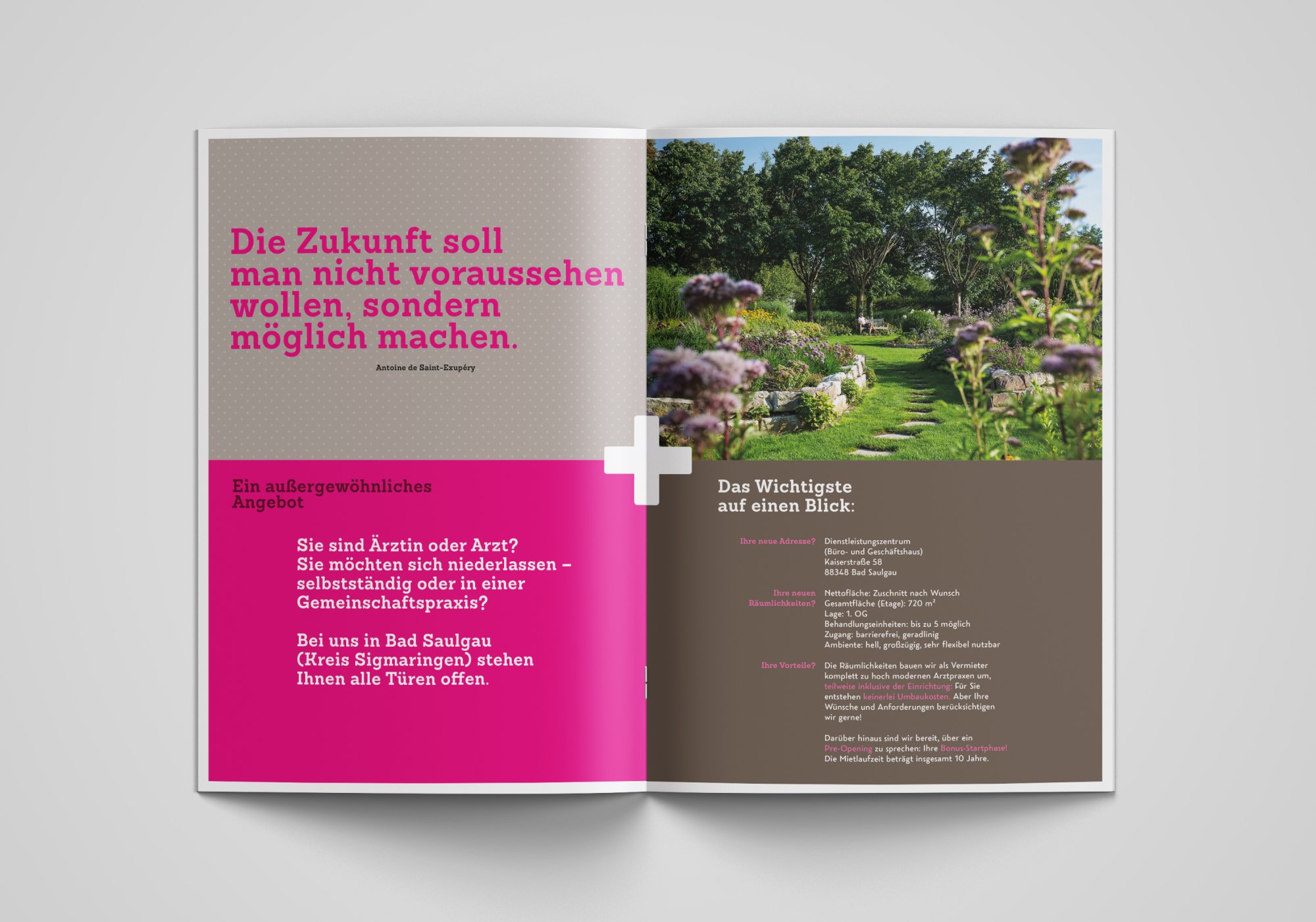 In Bad Saulgau (Kreis Sigmaringen) entsteht ein Ärztehaus mit hochmodernen Praxen, sehr flexibel nutzbar. Wir haben dieses außergewöhnliche Angebot inhaltlich und gestalterisch für die Firma Reisch Gebäudemanagement GmbH & Co. KG in Form gebracht.
