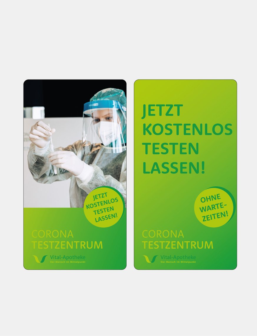 Projektlogo Testzentrum, Leitsystem, Printmedien, Social Media