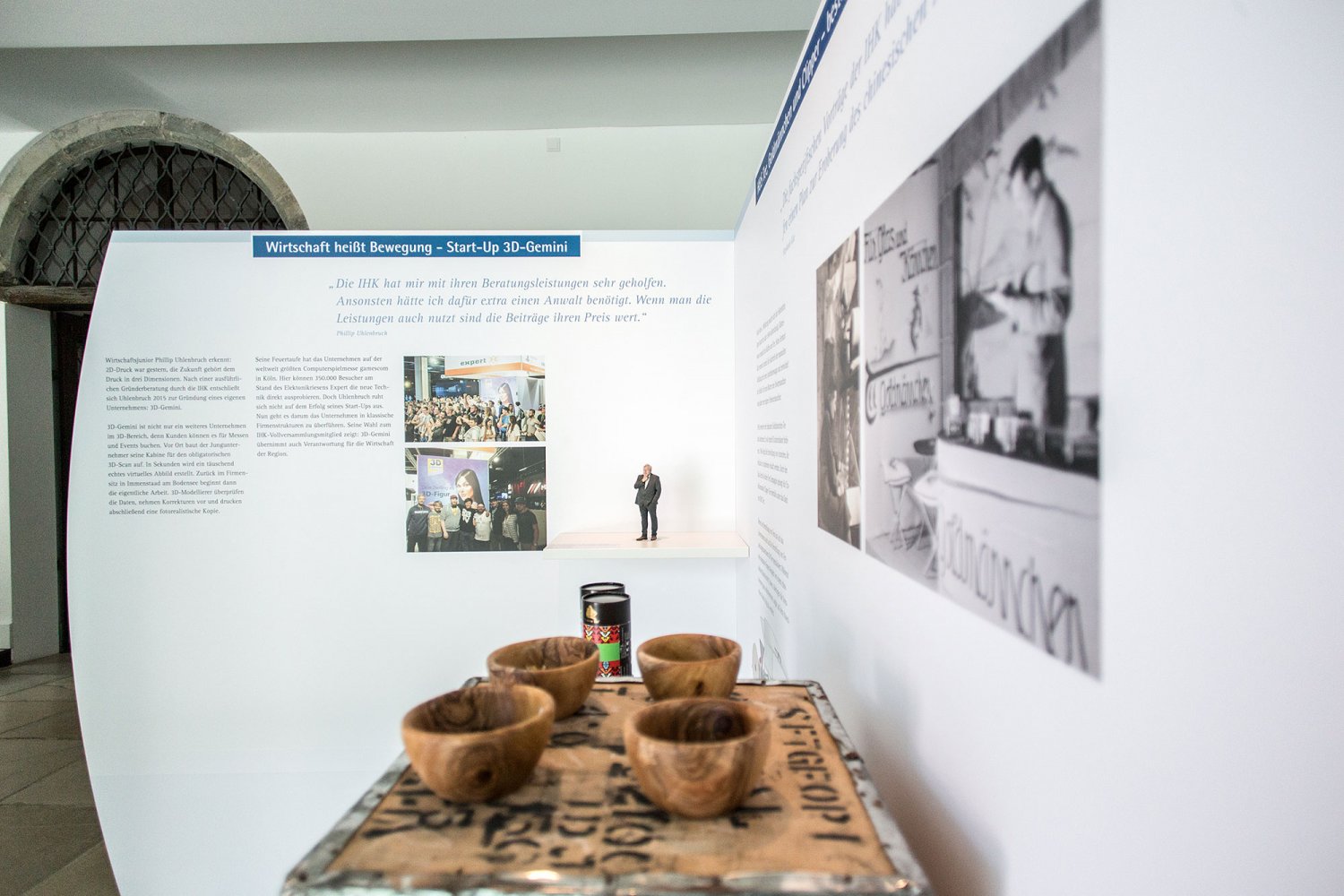 Die IHK Bodensee-Oberschwaben feiert ihr 150-jähriges Bestehen mit einer spannenden Ausstellung zu 150 Jahre regionaler Wirtschaftsgeschichte. Als besonderes Exponat hat die Zone dafür ein Riesen-Puzzle mit 250.000 Teilen produzieren lassen, was in etwa der Anzahl der IHK-Mitgliedsunternehmen entspricht. Ein begehbares IHK-Logo mit vier Kammern zeigt wissenswerte Kurzfilme und Einblicke und die Organisationsstruktur der Körperschaft.